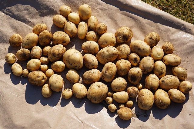 庭に植えたジャガイモの収穫 8月の終わり。 庭の隅にある花壇にジャガイモを植えた。 種芋はホームセンターで購入した、三重丸という品種。 確か8~10個くらい植えたような気がする。 そんなジャガイモ、暑さにも負けずスクスクと育ち (無農薬、無肥料、... -