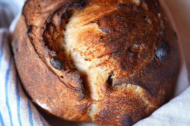 中種法で作ったパン 微量イーストで中種を作り、発酵させたパン。 今回は生地にピーカンナッツ、クランベリー、レーズンを加えた。 プクプクと発酵した中種。 その中種を使った生地はゆっくり、のんびりと発酵が進む。 二次発酵を終えた生地にクープを一本... -