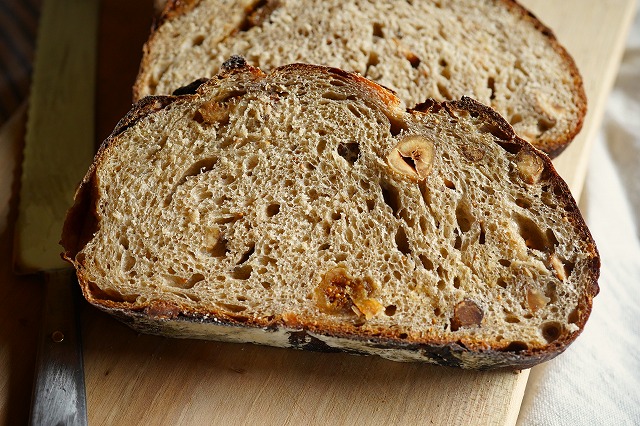 今回はヘーゼルナッツとドライイチジクを使ったパン。