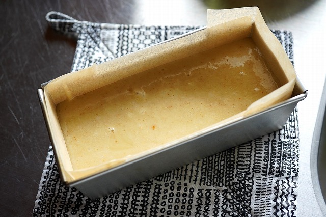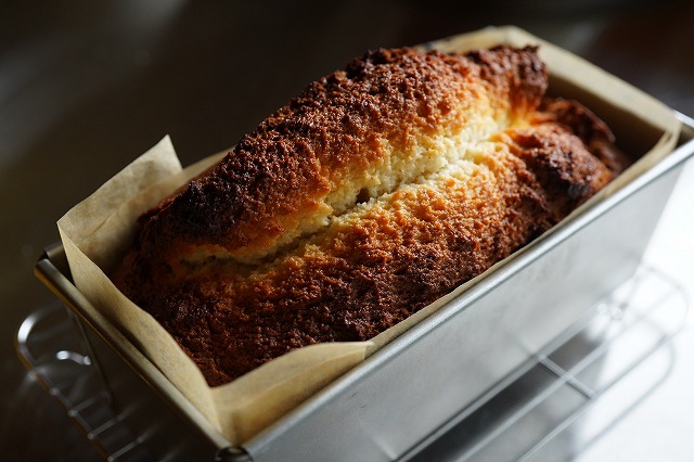 フィナンシェの生地をパウンド型で大きく焼くというレシピ。