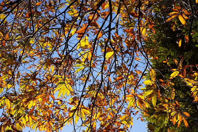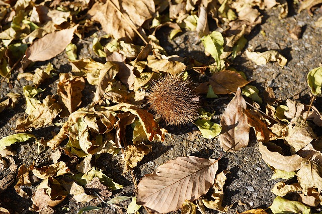 そんな黄葉だけでなく、道端の木や栗のイガにも目がいく。