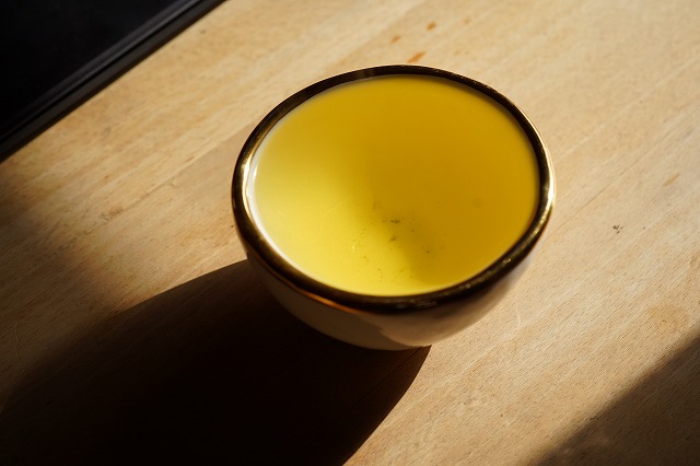 器を両手で包み込み、温もりが指に伝わるようにしながらゆっくり飲む。