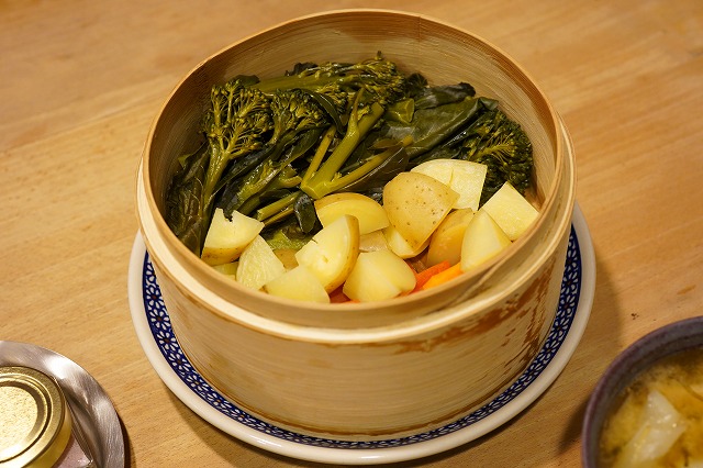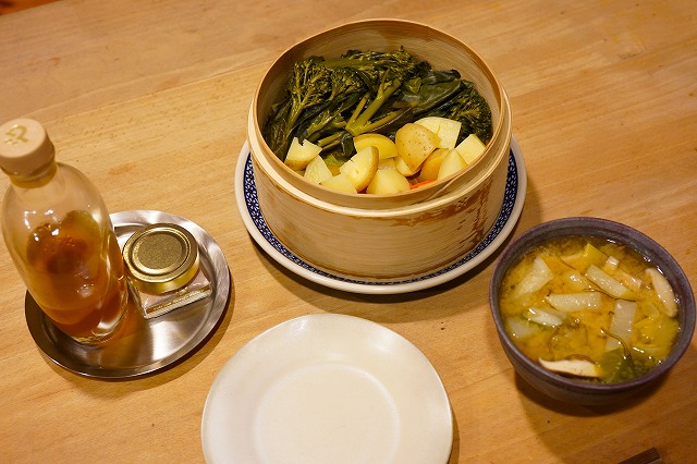 それでも野菜は食べたくて、メニューは蒸し野菜と味噌汁になった。