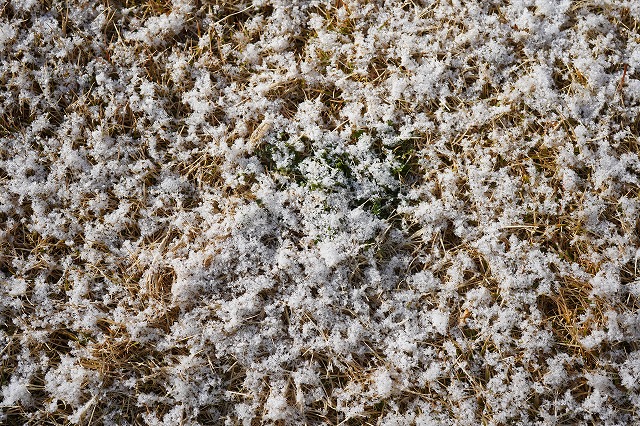 庭の芝にも、車にも、屋根にも、雪がうっすら張り付いている。