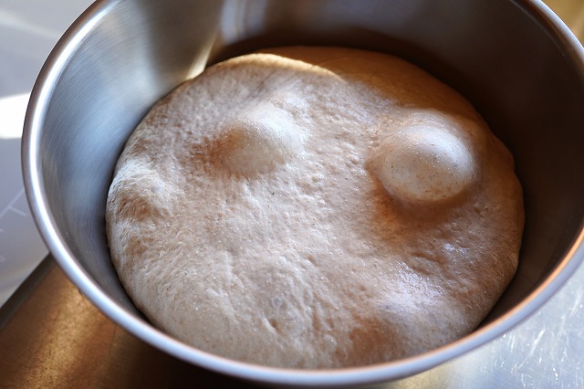 温かい場所で嵩が2倍程度になるまで発酵させ