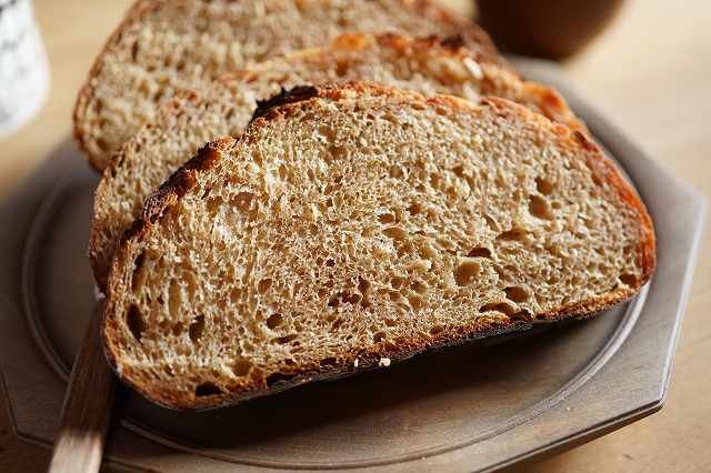 焼き上がりは案外ふっくら、小麦の甘い香りを強く感じるパンになった。