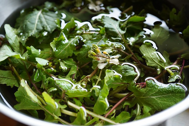 ルッコラ特有の芳ばしい香りが立ち上がる。